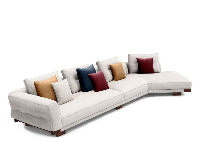 Un divano di design che offre composizioni diverse e mai convenzionali, articolate grazie a elementi angolari e terminali e a un pouf in versione con o senza tavolino. L’imbottitura dei cuscini è in fibra 100% riciclata, frutto del progetto di CassinaLAB per la promozione del benessere e del design sostenibile.