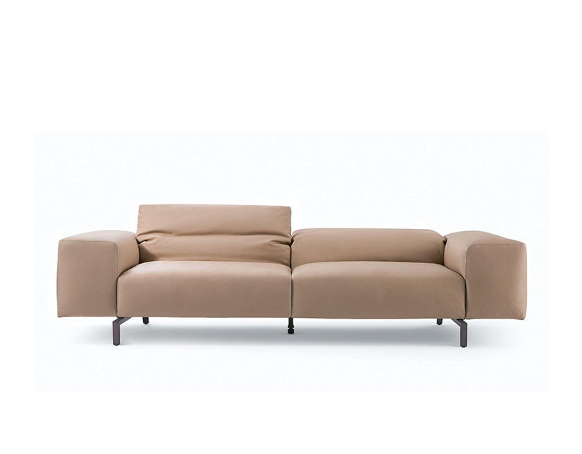 Un divano dalle proporzioni morbide e generose, ma anche leggere e minimali, progettate nell’ottica della versatilità, della funzionalità e del comfort. Scighera, con imbottitura in piuma, offre un ampio sistema di sedute ed elementi componibili che consentono di creare configurazioni estremamente ampie e flessibili. Il poggiatesta ribaltabile e le dimensioni amplificate dei braccioli, proposti anche nella versione stretta, diventano tratti connotanti del design. Il particolare meccanismo di movimento integrato nello schienale consente le diverse inclinazioni e si richiude a filo bracciolo per enfatizzare la linearità e il minimalismo delle forme. Un ulteriore tocco di distinzione deriva dalla pregiata cucitura con profilo in gros-grain, disponibile in quattro tonalità naturali.