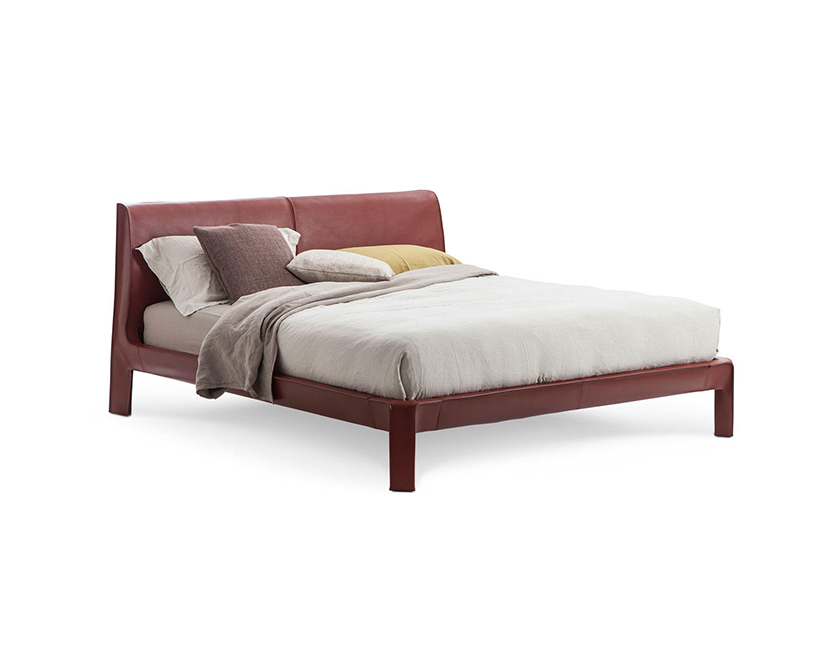 Il letto progettato da Mario Bellini si distingue per la struttura e le gambe rivestite in cuoio, un materiale caldo e prezioso, che viene arricchito con le impunture selleria visibili nelle congiunzioni tra le parti. La testiera leggermente affusolata e imbottita, definita da una cucitura centrale, è rivestita in cuoio e pelle pregiata, trattata con una concia speciale che la rende particolarmente morbida e confortevole. La lavorazione avanzata di materiali spessi e corposi rivela l’esperienza di Cassina e l’eccezionale maestria perfezionata in seguito alla realizzazione della sedia Cab. Le diverse parti in cuoio, tagliate mediante l’uso di una macchina a controllo numerico, sono successivamente lavorate manualmente per rendere questo esemplare un autentico capolavoro di manifattura. Il letto è disponibile nella versione con testiera tradizionale o fissa a parete, ideale per l’arredo in ambito contract.