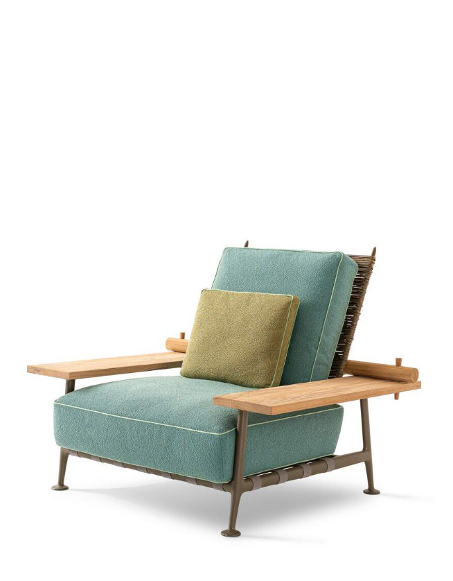 Definita da Philippe Starck "una collezione lifestyle di eleganza rilassata", Fenc-e Nature è la continuazione di un percorso intrapreso dall'autore con Cassina per rivoluzionare il modo di pensare il divano classico, usando materiali all'avanguardia e di altissima qualità nel rispetto dell'ambiente. La poltrona ha forme organiche - come il basamento in pressofusione di alluminio - ed elementi materici che celebrano l'armonia con la natura, come il bracciolo in massello di teak con finitura sabbiata, dall'effetto grezzo. Lo schienale, con telaio in acciaio Inox AISI 304 verniciato, è disponibile in corda intrecciata a mano con un disegno esclusivo o in salice naturale non trattato, usato qui per la prima volta. Il comfort sorprendente è garantito dai generosi cuscini per seduta e schienale con imbottitura in SoloSoff(C), un prodotto a base di fibra di poliestere soffiata e memory foam, e dallo schienale reclinabile in due posizioni grazie a un meccanismo manuale ispirato all'architettura asiatica: un palo di sostegno in massello di teak, lavorato per apparire come un ramo, da bloccare in posizione per mezzo di due chiodi in legno. Completano la collezione un divano a due e tre posti e un tavolino a due altezze.