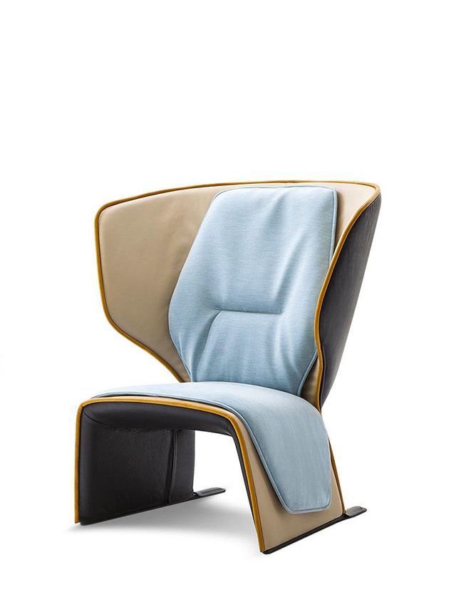 Gender è una poltrona avvolgente, elegante e flessibile. La sua identità mutevole nasce dall’incontro di colori e materiali apparentemente contrastanti ma combinati tra loro con infinita maestria. Lo schienale si adatta alla pressione del corpo inclinandosi di circa 12 gradi per poi tornare automaticamente in posizione, agevolato da un meccanismo di oscillazione che accresce la sensazione di comfort e morbidezza. La seduta, unica nel suo genere, è arricchita da un prezioso bordo in pelle colorata che corre lungo ogni profilo per valorizzare la sinuosità delle forme. La poltrona è disponibile in sette diverse combinazioni ed è abbinabile al pouf coordinato dotato di fascia protettiva in pelle.