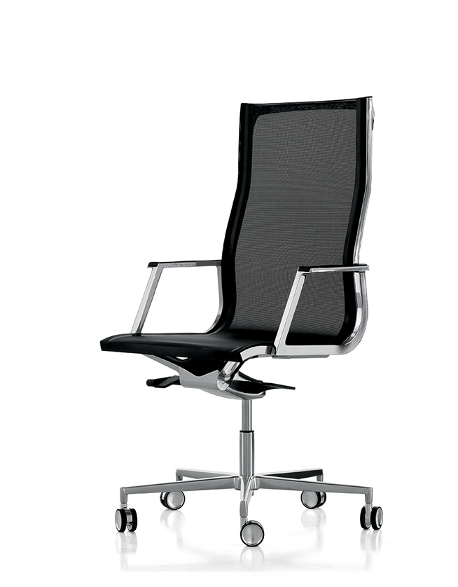 Nulite è disponibile in rete, pelle o tessuto, girevole o fissa. La sua struttura è completata da una leva laterale che permette di regolare l’intensità di oscillazione di schienale e seduta, anche grazie ad un meccanismo decentrato multiblock.