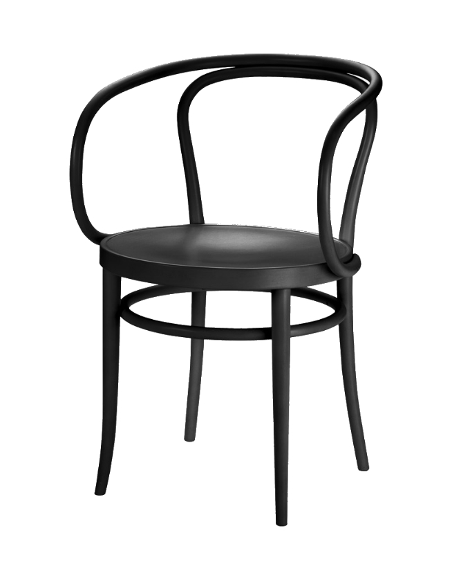 Questo elegante classico in legno curvato è un capolavoro nella sua costruzione e produzione: il telaio sporgente che forma sia lo schienale che il bracciolo è piegato nella sua forma da un unico pezzo di legno massello di faggio. Come il modello originale di tutte le sedie in legno curvato, n. 214, cattedra n. 209 si compone di sole sei parti. L'architetto svizzero Le Corbusier ne fu affascinato e lo utilizzò in molti dei suoi edifici, ad esempio per il Weissenhof di Stoccarda nel 1927. Una volta osservò che questa sedia "possiede la nobiltà".