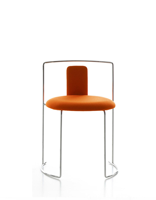 Leggera, aerea, impilabile. Gaja è un oggetto contemporaneo che rimanda alla classicità pura del razionalismo. La struttura aperta, realizzata in tondino di acciaio elettrosaldato e cromato, nasce per un piccolo ristorante e viene in seguito inserita nella SimonCollezione per il suo carattere agile e pratico. Il modello è disponibile con schienale imbottito o nella versione a sgabello, entrambi ideali per l’arredo in ambito soft contract.