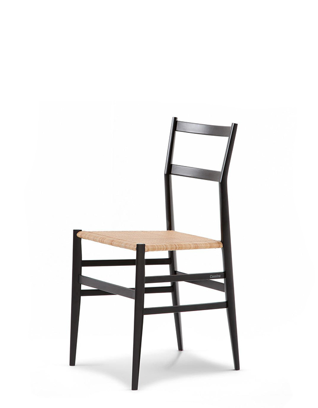 Riprodotta ininterrottamente dal 1957, la Superleggera rappresenta una sintesi esclusiva tra la ricerca di Gio Ponti e la sperimentazione avanzata di Cassina, divenendo icona indiscussa di modernità e raffinatezza artigianale. La sua sfida costruttiva è racchiusa nella sezione triangolare delle gambe, di soli 18 millimetri e con un peso minimo di 1.700 grammi, mentre la struttura in frassino elastico e leggero si abbina al telaio del sedile in legno di faggio, più compatto e resistente al carico. Gli elementi in legno, realizzati a macchina, sono rifiniti manualmente attraverso le procedure meticolose di incollaggio a pennello, pulitura dalla colla residua e impagliatura della seduta. Sapienza artigianale e innovazione industriale si incontrano così in un “oggetto primo”, ispirato alle tradizionali chiavarine liguri e offerto sia nella versione classica che nelle varianti colorate con seduta imbottita. .