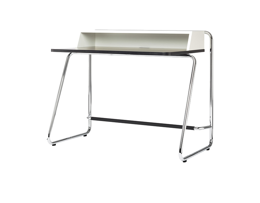 In varie versioni e con accessori opzionali la scrivania S1200 diventa un complemento d'arredo personalizzato e fa del lavoro un'esperienza. Il Thonet Design Team si è ispirato alla collezione dell'azienda di mobili classici in tubolare d'acciaio per questo progetto. Il vantaggio dell' S1200 sono le sue dimensioni compatte grazie alle quali può essere integrata nel più piccolo spazio. Un telaio in tubolare d'acciaio ben concepito costituisce la base dell' S1200; il suo design inclinato rende facile il suo inserimento anche nei corridoi e nelle nicchie più strette. Un poggiapiedi assicura una comoda posizione di seduta. Gli accessori opzionali aiutano a mantenere le cose sulla scrivania e nella scrivania correttamente organizzate: astuccio, casella di archiviazione A4, leggio multifunzionale , sistema di gestione dei cavi.